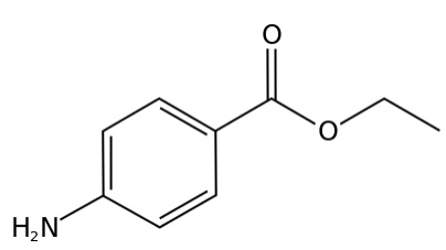 Benzocaine is the ethyl ester of p-aminobenzoic acid (PABA). It can be prepared from PABA and ethanol[23] by Fischer esterification or via the reduction of ethyl p-nitrobenzoate. Benzocaine is sparingly soluble in water; it is more soluble in dilute acids and very soluble in ethanol, chloroform, and ethyl ether. The melting point of benzocaine is 88–90 °C,[24] and the boiling point is about 310 °C.[25] The density of benzocaine is 1.17 g/cm3.